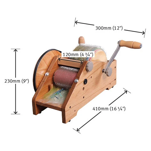 The Wild Carder is specifically designed for blending and creating exciting fun, funky and wild batts for spinning and felting. Create unique blends with added extras – fibers, fabrics, ribbons, feathers, noils, cocoons, paper and more. The carding width is 4 inches which produces a handy size batt ready to spin. The carder is portable and compact and has a with built-in hand hold.