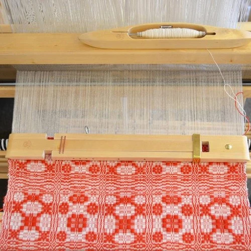 A very helpful device to maintain the warp width as sleyed in the reed and prevent narrowing. These wood temples will adjust to the length range indicated.