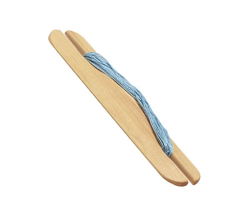 Similar to stick shuttles but with one beveled edge, belt shuttles carry weft back and forth and also beat the weft into place.