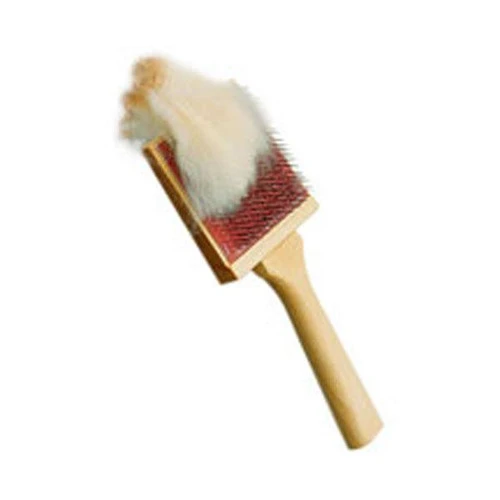 Schacht’s flick carder is a small, single fiber carder with 72 points per inch.