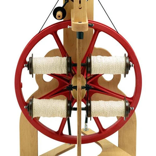 The lazy kate is tensioned which helps keep tangles down while plying on a wheel mounted lazy kate.