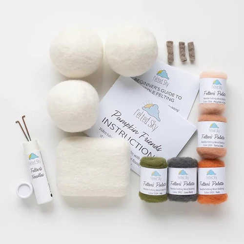 This kit starts with pre-formed and partially felted balls so you can get right to shaping and decorating them. Then learn to make simple leaves to adorn their tops.